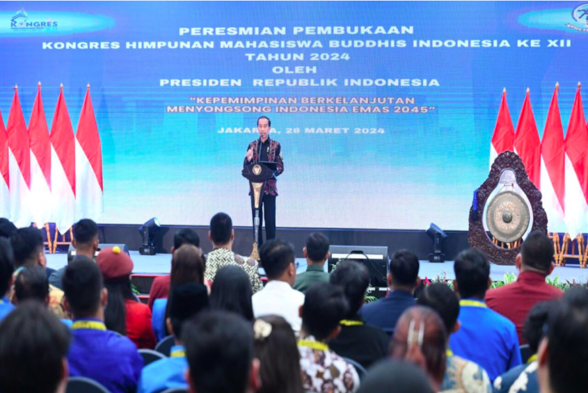 Hal tersebut disampaikan Presiden dalam sambutannya pada peresmian pembukaan Kongres Himpunan Mahasiswa Buddhis Indonesia (Hikmahbudhi) XII Tahun 2024 di Mercure Convention Center, Jakarta, pada Kamis, 28 Maret 2024.
