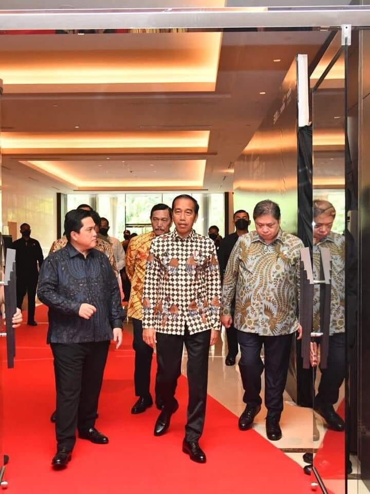Turut mendampingi Presiden dalam kesempatan tersebut adalah Menteri Koordinator Bidang Perekonomian Airlangga Hartarto, Menteri Koordinator Bidang Kemaritiman dan Investasi Luhut Binsar Pandjaitan, Menteri BUMN Erick Thohir, dan Direktur Utama PT Bank Mandiri Tbk Darmawan Junaidi.