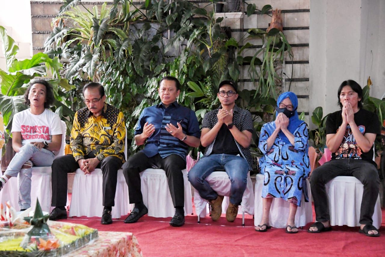 JAKARTA – Ketua MPR RI sekaligus Wakil Ketua Umum Partai Golkar Bambang Soesatyo menghadiri syukuran persiapan penyelenggaraan Konser HUT-39 Slank, ‘Beautiful Smile (BS) Indonesia Tour’, di Markas Slank Potlot, Pasar Minggu, Jakarta. Selama 39 berkiprah di blantika musik, Slank tidak hanya telah meramaikan pasar musik Tanah Air, melainkan juga meramaikan pasar musik internasional. Tercatat berbagai konser internasional pernah mereka selenggarakan, antara lain di Amerika, Jepang, Korea Selatan, Thailand, Filipina, serta berbagai negara Eropa seperti Belanda (Amsterdam), Inggris (London), dan Jerman (Hamburg dan Bonn).