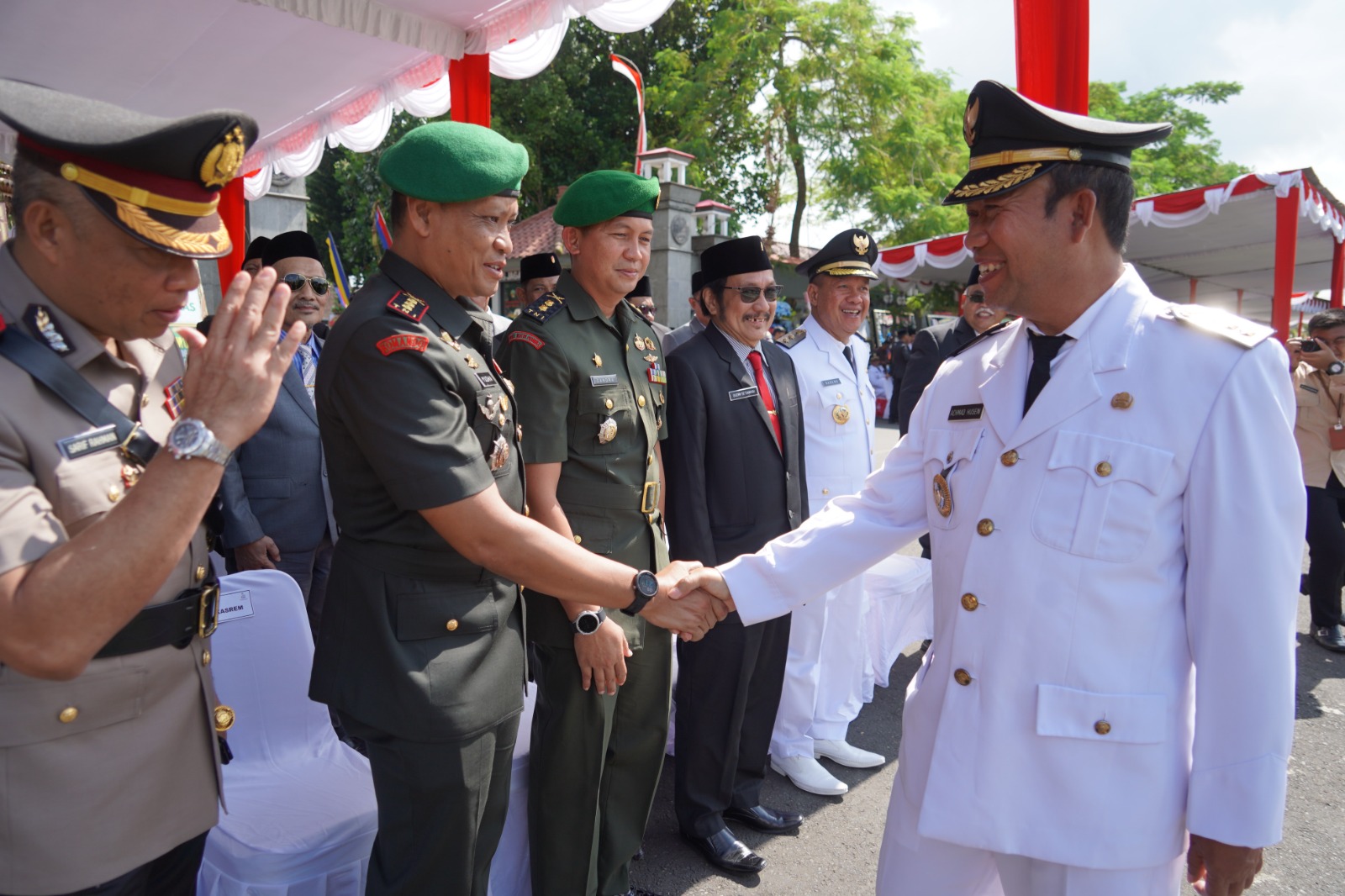 Purwokerto – PK NEWS Danrem 071/Wijayakusuma Kolonel Inf Yudha Airlangga, S.E., dengan didampingi Ketua Persit Kartika Chandra Kirana Koorcab Rem 071 PD IV/Diponegoro Ny. Natania Yudha Airlangga, hadiri Upacara Hari Jadi Ke-452 Kabupaten Banyumas, Rabu (22/2/2023) di Alun-alun Purwokerto, Banyumas.
