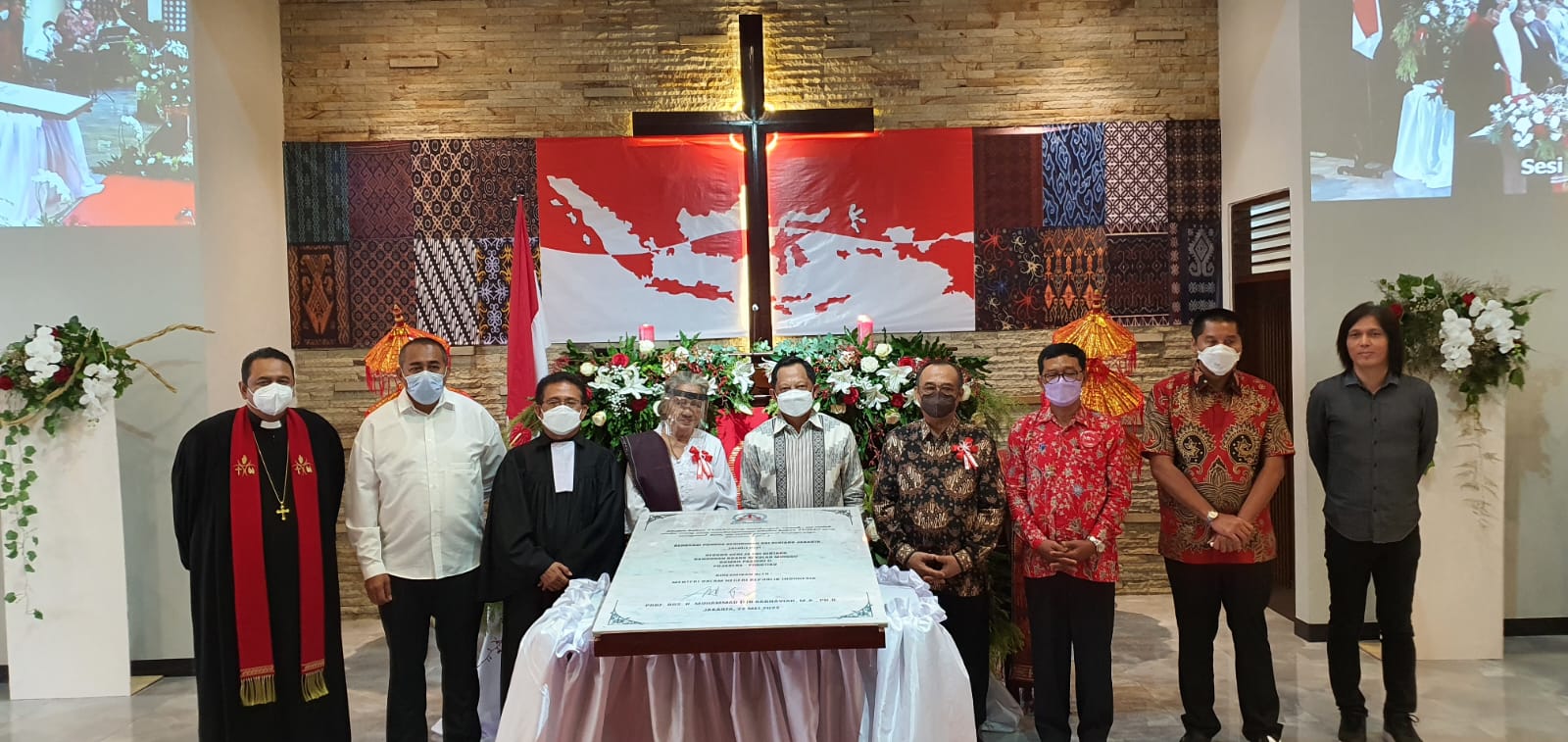 Jakarta – Mendagri Prof. Drs. Tito Karnavian, MA, Ph.D meresmikan Gedung GKI Bintaro Jakarta hasil renovasi pada Minggu, 22 Mei 2022 ditandai pemukulan Gong tiga kali dan dilanjutkan penandatanganan prasasti bertempat di dalam gereja.