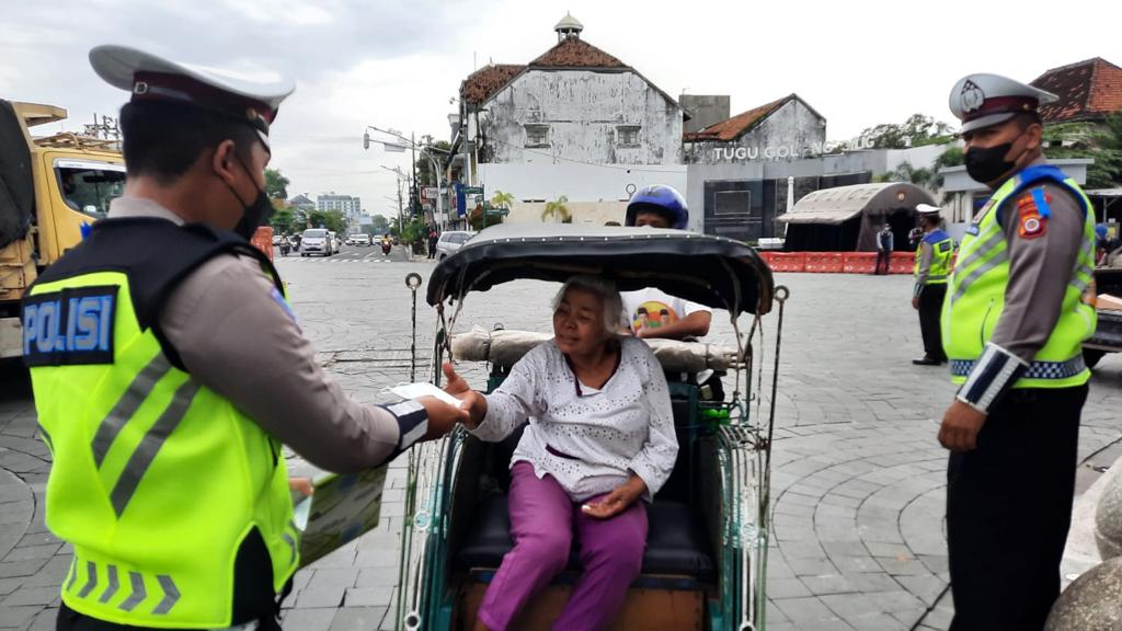 Petugas menghimbau agar masyarakat selalu mengutamakan keselamatan saat berkendara dan tetap mematuhi protokol kesehatan untuk mencegah penyebaran covid 19. Dalam kesempatan tersebut petugas membagikan masker dan leaflet yang berisi himbauan untuk tetap tertib berlalu lintas.