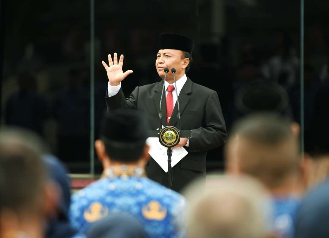 KOTA BANDUNG – PELITAKOTA.ID Sekda Jabar Herman Suryatman menjadi pembina upacara Hari Otonomi Daerah XXVIII, di halaman Gedung Sate Bandung, Kamis (25/4/2024).