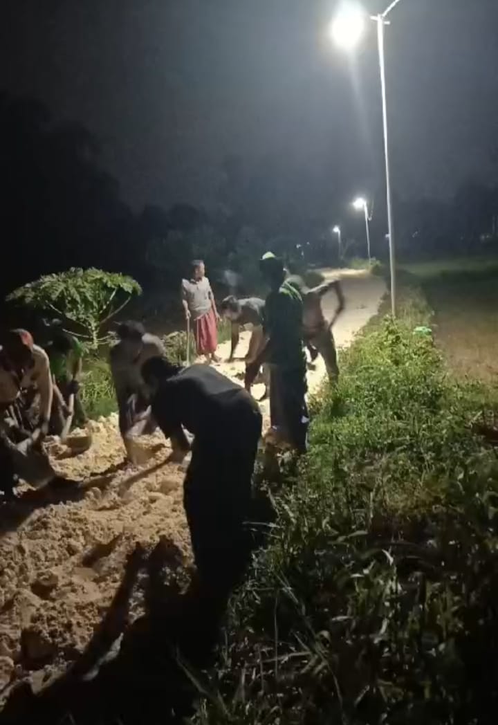 Sampang – Warga dusun Lembung Desa Paseyan, Kecamatan Sampang , Kabupaten Sampang, bergotong royong memperbaiki kerusakan jalan yang berlubang dan di genangi air ketika hujan rasa kekecewaan terhadap Pemerintah tak kunjung di perbaiki, membuat warga perbaiki jalan dengan patungan , aksi gotong royong warga dusun Lembung hingga larut Malam yang memperbaiki jalan ,Jumat (20/12/2024).