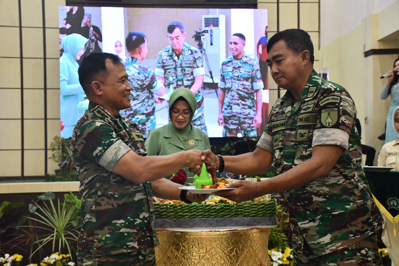 MADIUN – Korem 081/DSJ menggelar syukuran HUT ke-59 tahun, di Gedung Serbaguna Jenderal Sudirman, Makorem jln Pahlawan no 50 Madiun, Jumat (25/11/2022). Mengusung tema ”Pengabdian Kami Tiada Henti” syukuran dihadiri Kodim jajaran, Dansatdisjan dan Forkopimda Madiun Raya.