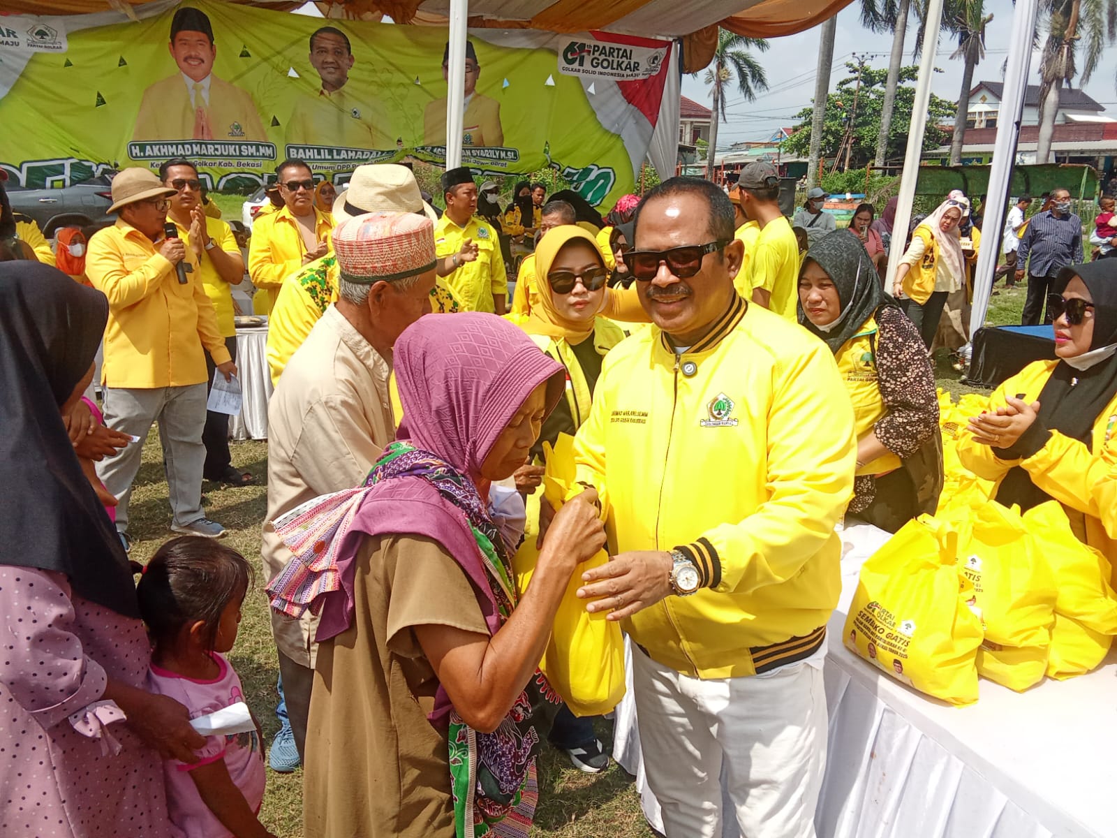 Kegiatan ini dihadiri oleh Ketua DPD Partai Golkar Kabupaten Bekasi, H. Akhmad Marjuki, yang menyampaikan bahwa pembagian sembako ini merupakan instruksi dari DPP Partai Golkar.