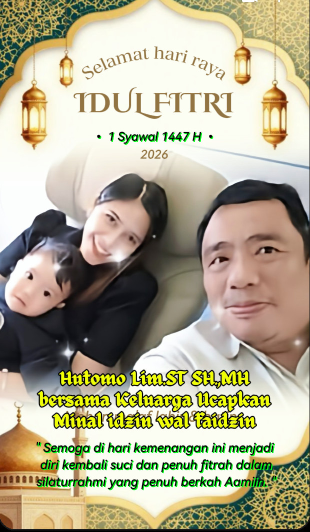 Lebih lanjut Hutomo Lim. ST.,SH.,MH bersama keluarga mengucapkan” Selamat Hari Raya Idul Fitri 1447.H, Mohon Maaf Lahir dan Batin, dengan hati yang tulus saya pribadi bersama keluarga menyampaikan mohon maaf atas segala kesalahan yang pernah terjadi.