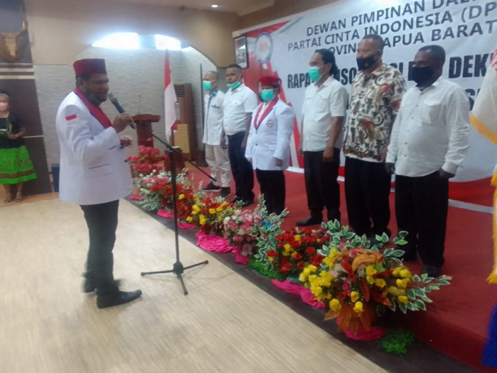 HYU saat sambutan mengatakan, Partai Cinta Indonesia harus menjadi besar dan berkembang di Provinsi Papua Barat. Terutama menjadi sebagai kekuatan politik baru dalam perpolikan lokal yang ada di Papua Barat dan kancah nasional.