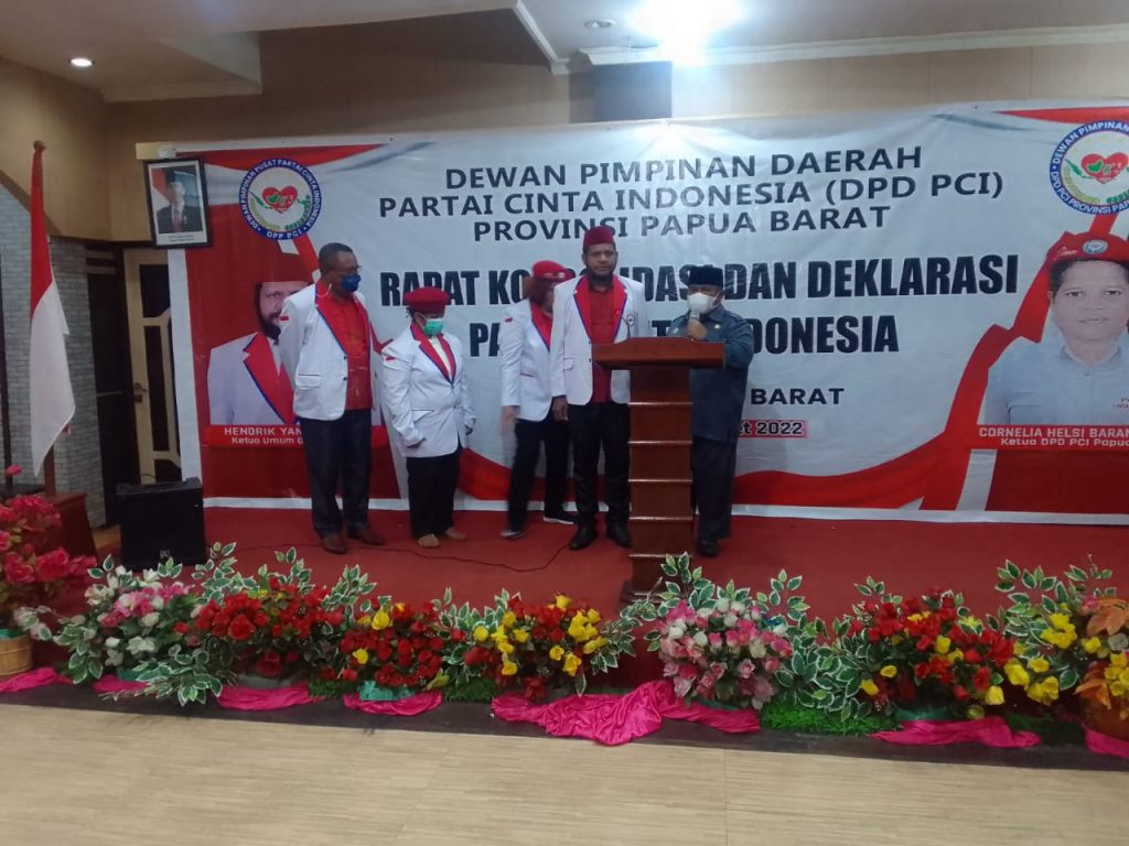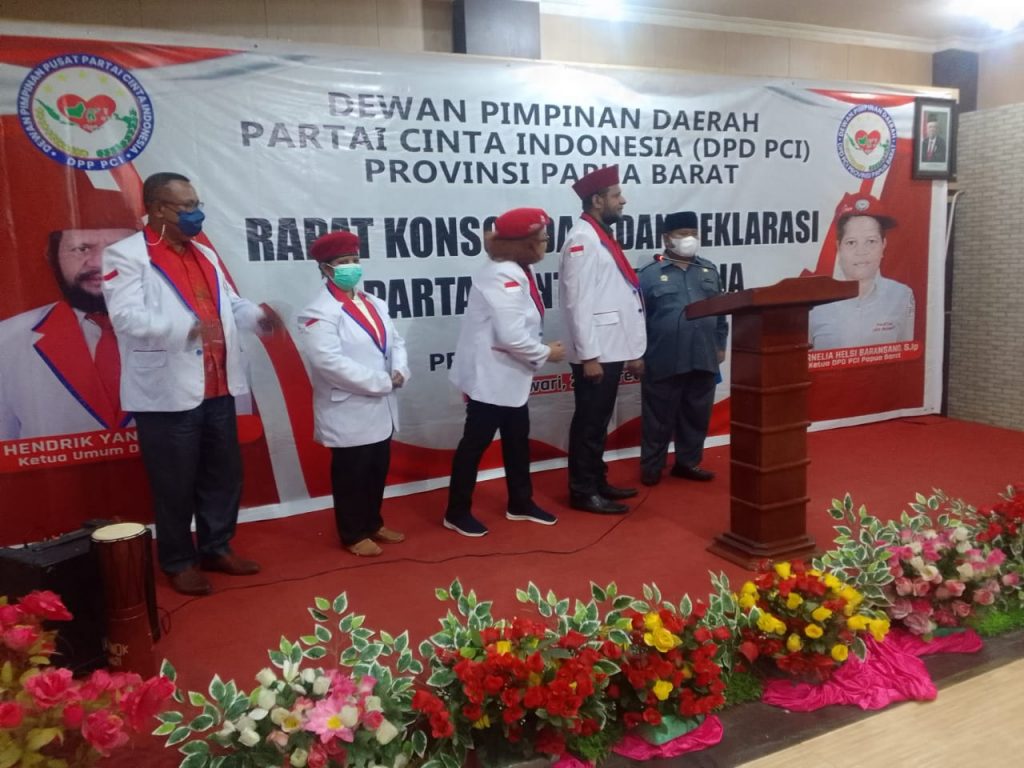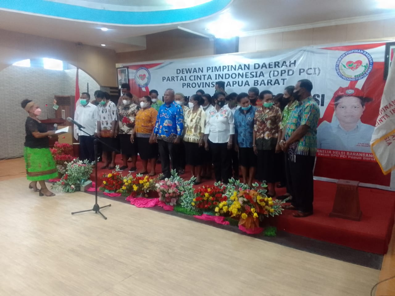 Manokwari – Ketua Umum Dewan Pimpinan Pusat Partai Cinta Indonesia (DPP PCI), HYU sapaan akrab dari Hendrik Yance Udam melantik Cornelia Helsi Baransano SIP sebagai sebagai Ketua Dewan Pimpinan Daerah (DPD PCI) Provinsi Papua Barat.