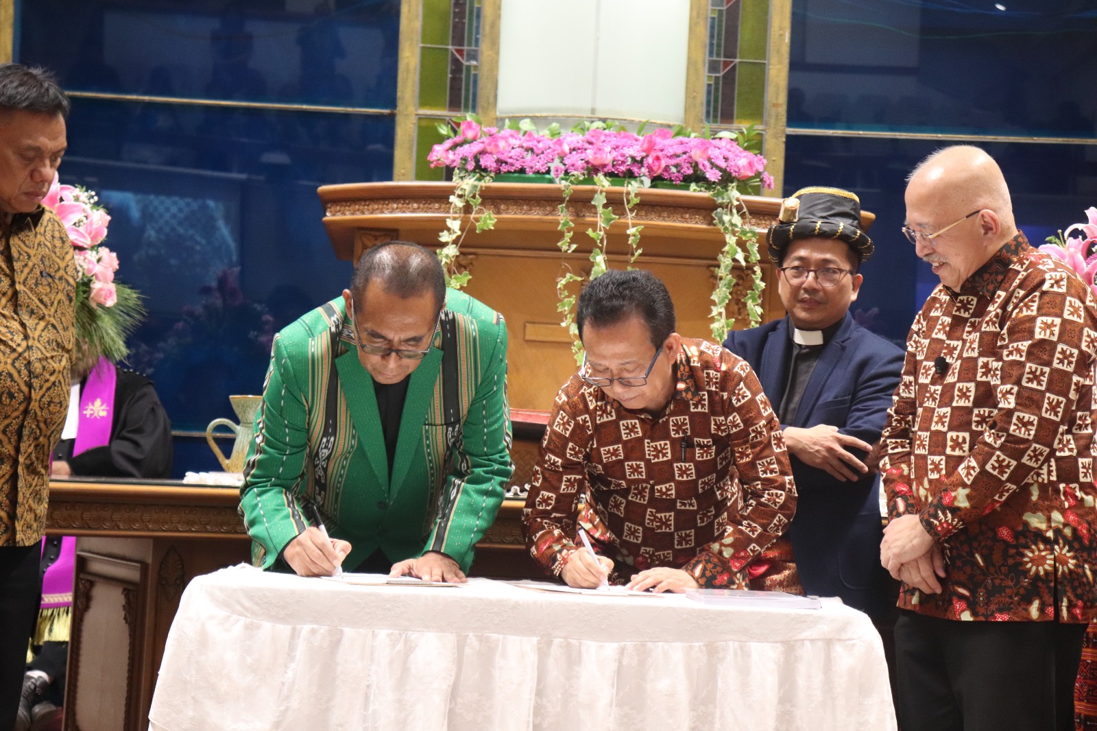 Jakarta – Tongkat estafet kepemimpinan bahtera oikoumene resmi beralih dari MPH-PGI periode 2019-2024 kepada MPH-PGI periode 2024-2029. Prosesi peralihan tersebut ditandai dengan penandatangan berita acara yang dilakukan Ketua Umum PGI (2024-2029) Pdt. Jacklevyn Fritz Manuputty, Sekum PGI (2024-2029) Pdt. Darwin Darmawan, dan Pdt. Gomar Gultom, termasuk para saksi Pdt. Henriette Lebang serta Pdt. Handreas Hartono, dalam acara Ibadah Adven dan Serah Terima MPH PGI, di GKI Samanhudi, Jakarta, Jumat (13/12/2024).