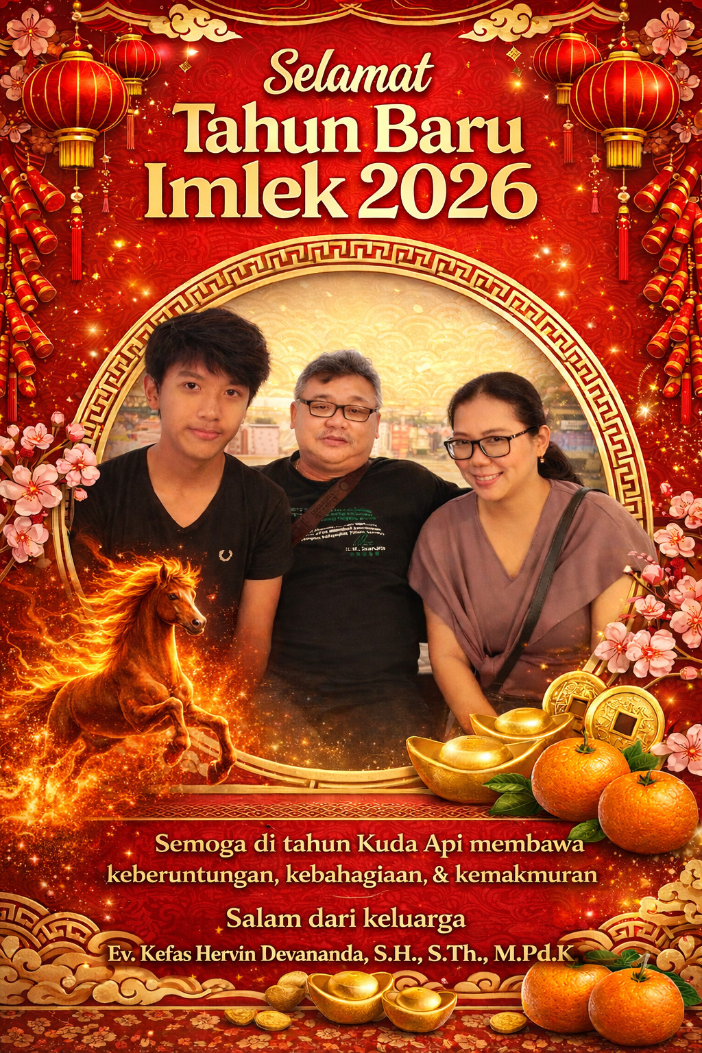 Menutup refleksinya, Romo Kefas bersama keluarga menyampaikan Selamat Tahun Baru Imlek 2026. Gong Xi Fa Cai. Semoga Tahun Kuda Api menghadirkan keberanian untuk berlaku adil, kebijaksanaan dalam merawat perbedaan, serta kedamaian yang meneguhkan persatuan Indonesia.