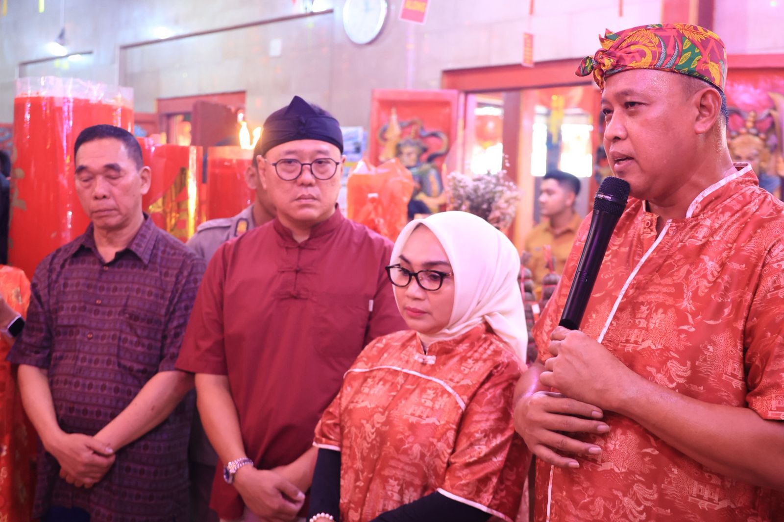 Kehadiran keduanya disambut antusias oleh pengurus dan umat yang memadati area kelenteng. Tak sekadar memberi sambutan, Tri dan Wiwiek berkeliling menyapa warga satu per satu, berbincang santai, dan berfoto bersama keluarga yang hadir. Suasana penuh kehangatan pun terasa sejak awal acara.
