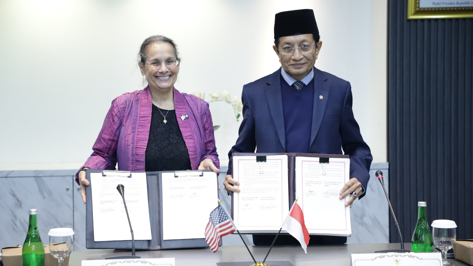 Jakarta – Menteri Agama Republik Indonesia, Nasaruddin Umar, bersama Duta Besar Amerika Serikat untuk Indonesia, Kamala S. Lakhdhir, resmi menandatangani nota kesepahaman (MoU) untuk memperluas cakupan Program Fulbright. Program beasiswa itu merupakan inisiatif Pemerintah AS yang kini akan menjangkau lembaga dan individu binaan Kementerian Agama (Kemenag).