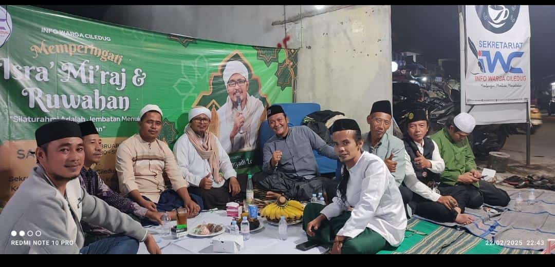 KOTA TANGERANG, – Sambut bulan suci Ramadhan 1446H Komunitas INFO WARGA CILEDUG (IWC) gelar acara Isra Mi’raj Dan Ruwahan Yang dilaksanakan di sekretariat IWC kedai K’Opi komplek Ciledug indah dua RT 08 RW 01 kelurahan Pedurenan kampung poncol, kecamatan karang tengah, kota Tangerang pada sabtu 22 februari 2025.