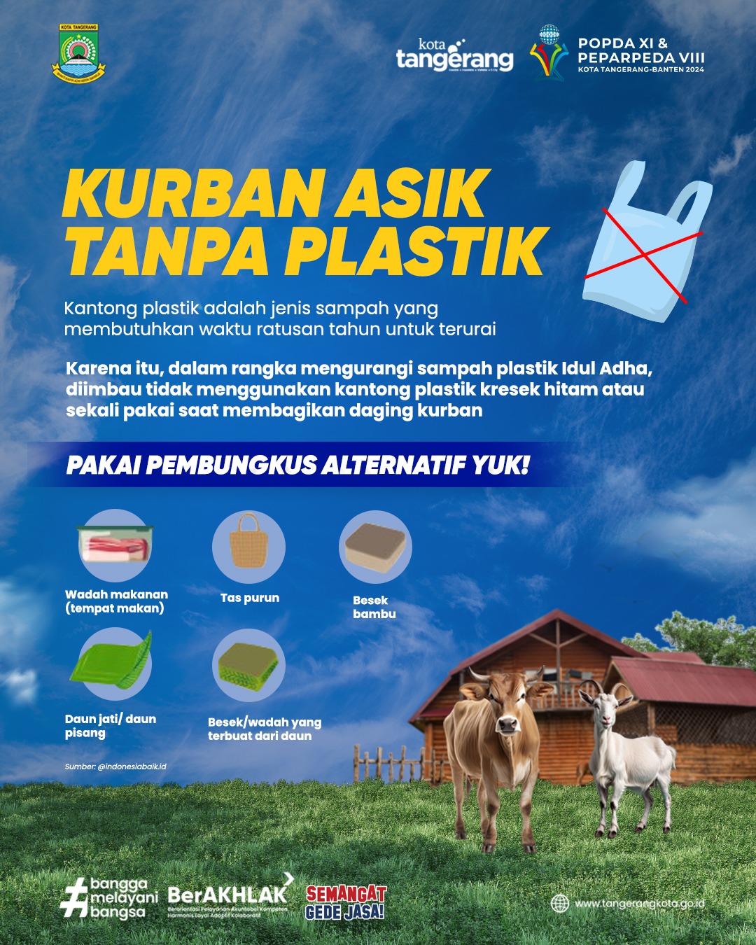 Pelaksana harian (Plh) Kepala Dinas Kesehatan (Dinkes) Kota Tangerang Mugiya Wardhany mengimbau kepada panitia kurban serta masyarakat untuk tidak menggunakan kantong plastik hitam atau kantong plastik sekali pakai sebagai wadah daging kurban. Karena kantong plastik merupakan hasil dari proses daur ulang plastik bekas pakai yang mengandung zat karsinogen dan berbahaya bagi kesehatan.