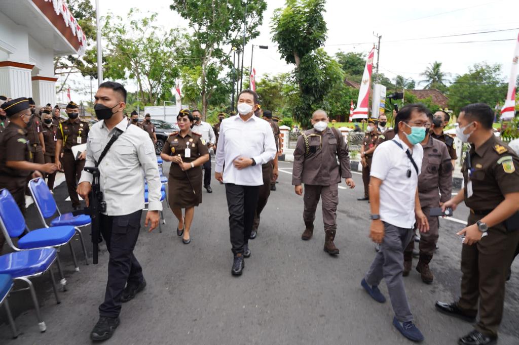 Bangka – Selasa 26 Juli 2022, Jaksa Agung Burhanuddin didampingi oleh Kepala Kejaksaan Tinggi Bangka Belitung Daru Tri Sadono, Kepala Pusat Penerangan Hukum Kejaksaan Agung Ketut Sumedana, Asisten Khusus Jaksa Agung Hendro Dewanto, dan Asisten Umum Jaksa Agung Kuntadi melakukan kunjungan kerja di Kejaksaan Negeri Bangka dan melakukan pemeriksaan di seluruh bidang.