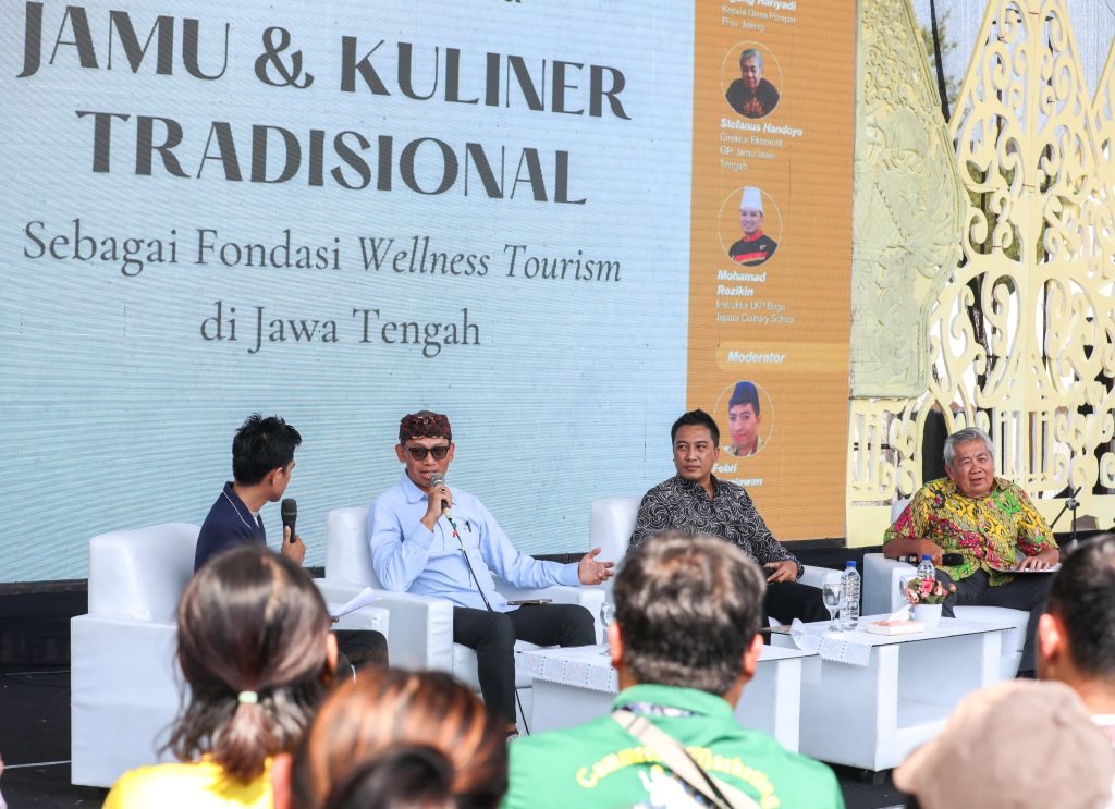 SALATIGA – Semangat Hari Jadi ke-79 Provinsi Jawa Tengah juga menular kepada jamu dan kuliner tradisional. Hal ini mengemuka pada salah satu rangkaian kegiatan Hari Jadi, yakni Bincang Pariwisata Jamu dan Kuliner Tradisional sebagai Fondasi Wellness Tourism di Jawa Tengah, di kampus Universitas Islam Negeri (UIN) Salatiga, Senin (19/8/2024).