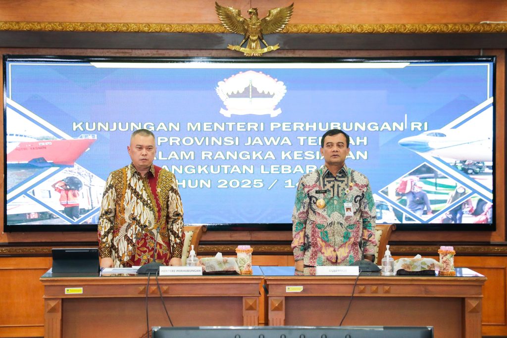 Hal itu ditegaskan Gubernur Jawa Tengah, Ahmad Luthfi, seusai menerima kunjungan Menteri Perhubungan RI Dudy Purwagandhi beserta rombongan, dalam rangka Koordinasi Kesiapan Angkutan Lebaran 2025/1446 H, di Kompleks Kantor Gubernur Jateng, Kamis (6/3/2025). Disampaikan, rencananya penyelenggaraan posko terpadu Lebaran 2025 mulai 24 Maret hingga 8 April 2025.