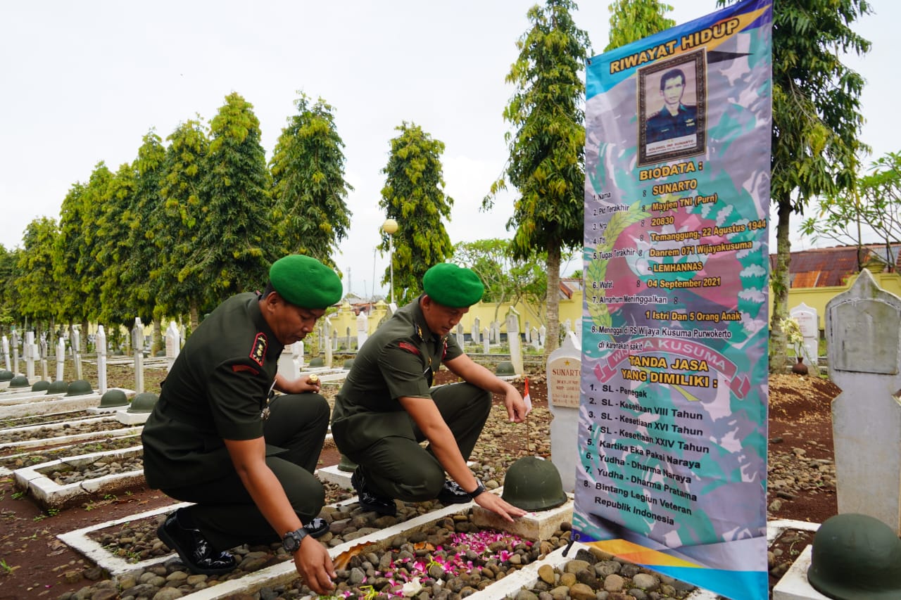 Ziarah dipimpin Kasrem 071/Wijayakusuma Letkol Inf Candra, S.E., M.I.Pol., diikuti prajurit dan PNS Makorem 071/Wijayakusuma, Kodim 0701/Banyumas, dan Balak Aju Kodam IV/Diponegoro jajaran Korem 071/Wijayakusuma serta Persit Kartika Chandra Kirana Koorcab Rem 071 PD IV/Diponegoro dan Persit Kartika Chandra Kirana Cabang XVI Kodim 0701/Banyumas.