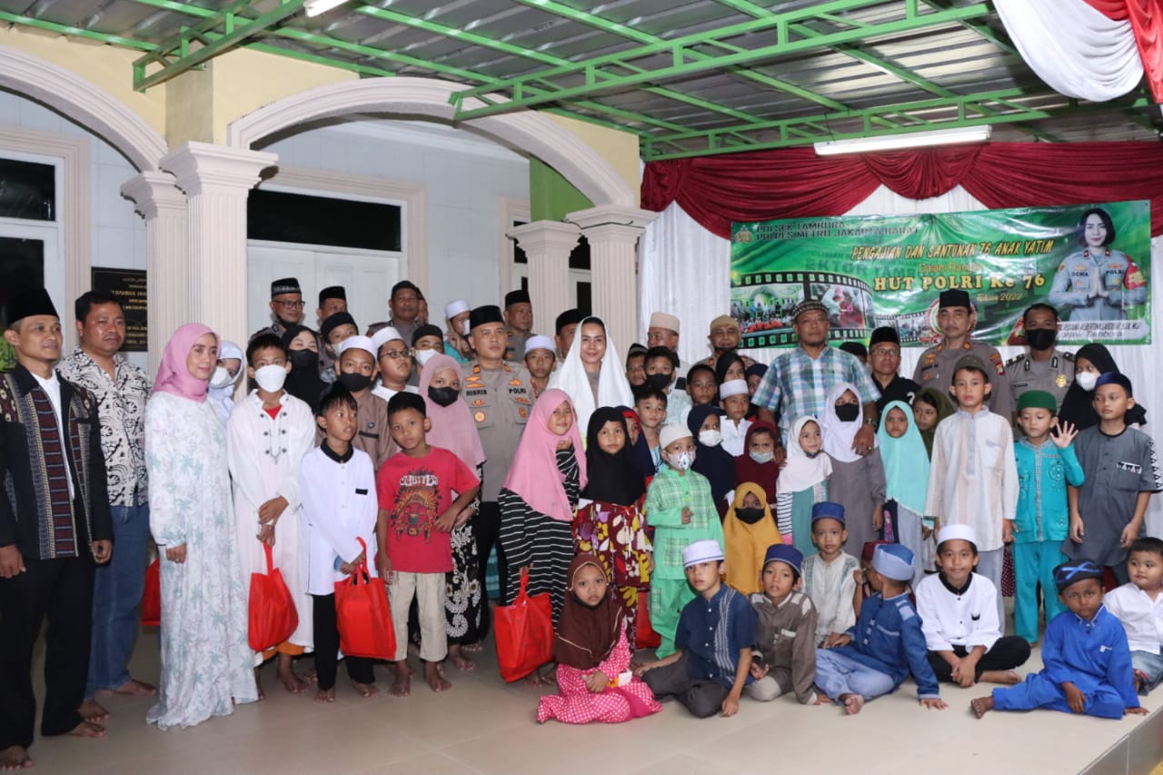 Kegiatan religi tersebut dalam rangka menjelang perayaan hari bhayangkara ke 76 dihadiri sebanyak 76 anak yatim dan piatu