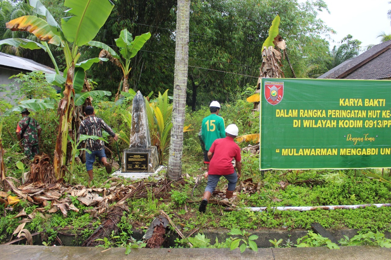 Segenap personil Kodim 0913/PPU dan instansi lainnya serta warga masyarakat Kelurahan Nenang melaksanakan pembersihan dan perawatan lokasi Monumen Pengibaran Bendera Merah Putih pertama kali di kibarkan di wilayah Kaltim.