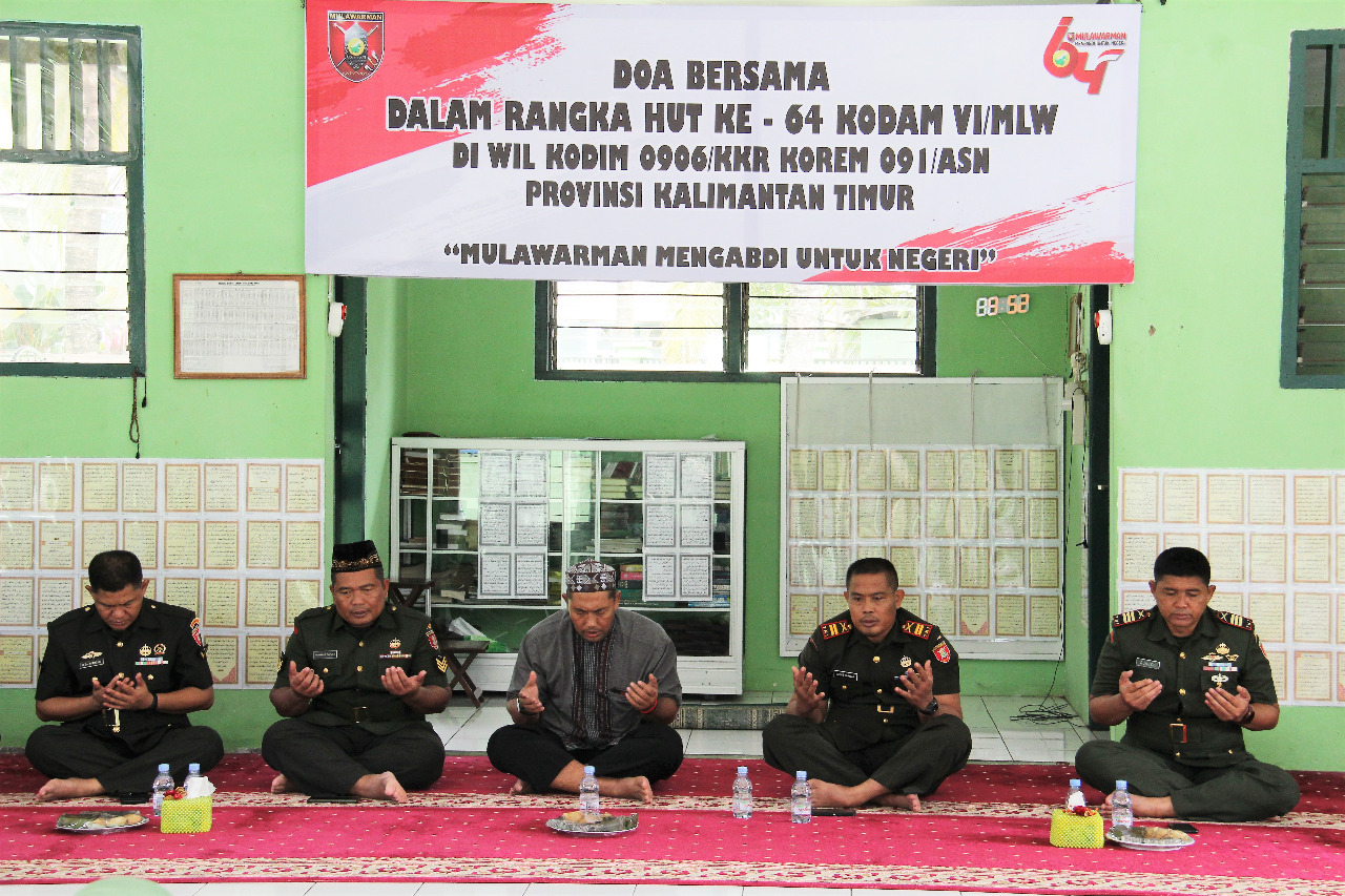 Kutai Kartanegara – Jelang peringatan HUT ke- 64 Kodam VI/Mulawarman, keluarga besar Kodim 0906/Kutai Kartanegara (Kkr) dipimpin Pasiter Kapten Inf. Sukoco laksanakan do’a bersama di langgar Nurul Jihad, jalan KH. Ahmad Mukhsin kelurahan Timbau kecamatan Tenggarong Kabupaten Kutai Kartanegara (Kukar).