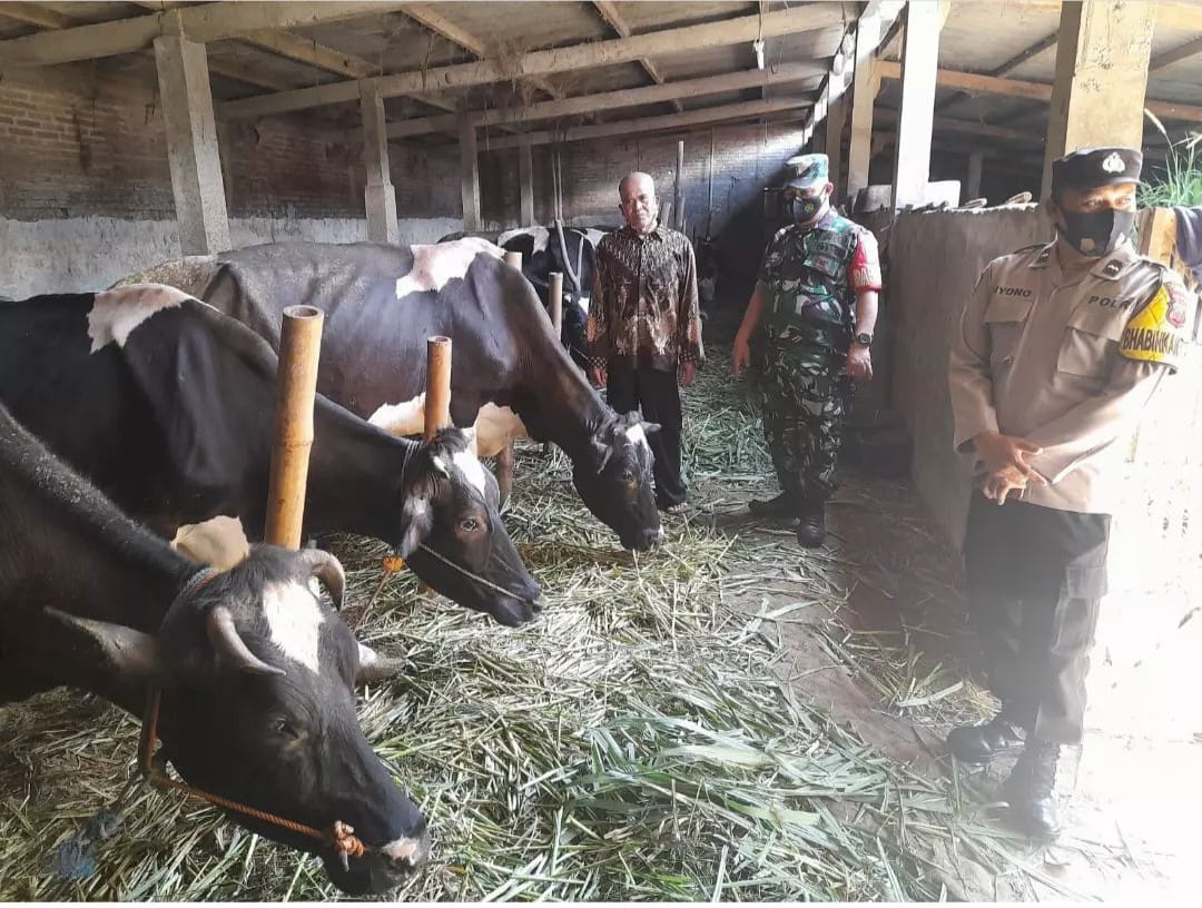 Dalam kesempatan tersebut Serda Turyanto dan Babinkamtimas berbincang langsung dengan bapak Purwanto terkait dengan kesehatan ternak dan langsung memeriksa hewan tersebut ditempat.