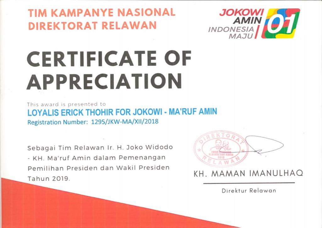 “Relawan kami saat 2019 menamakan diri Loyalis Erick Thohir (Letho) for Jokowi-Ma’ruf Amin, saat ini waktunya untuk kami mendeklarasikan dukungan untuk pak Erick Thohir langsung sebagai estafet kepemimpinan yang layak setelah bapak Jokowi,” ungkap Anshar, Jumat malam (22/04/2022).
