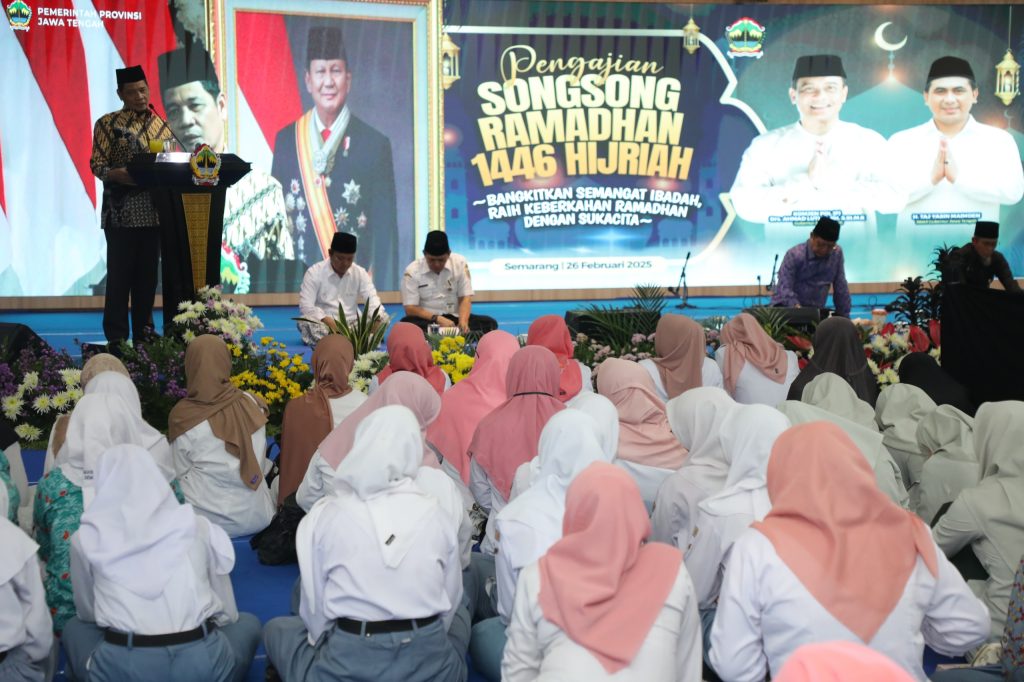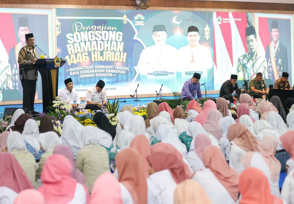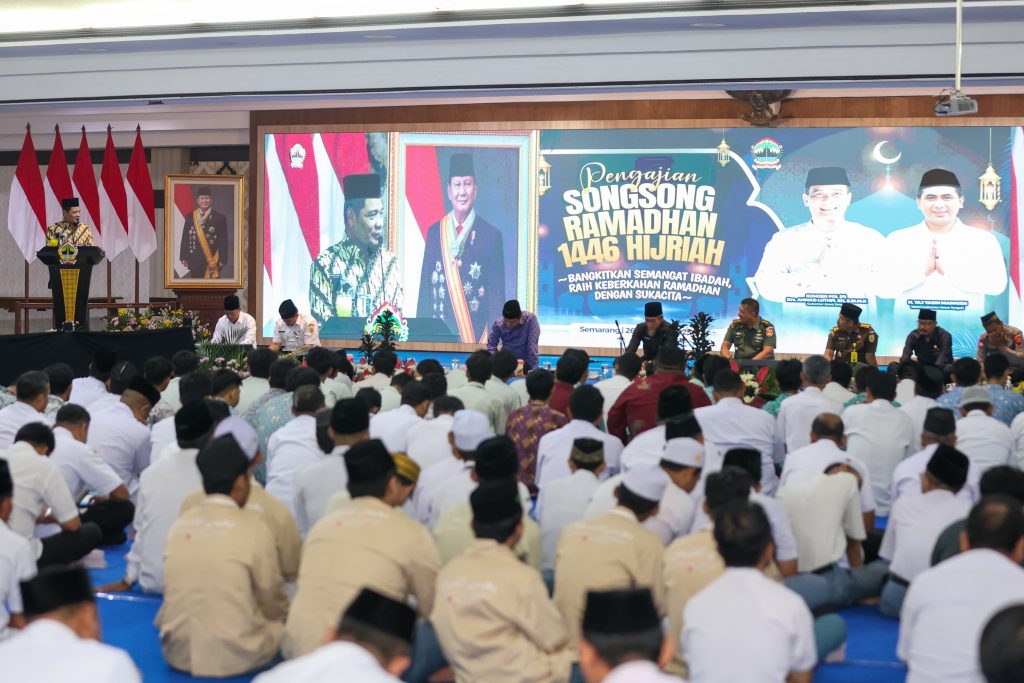 SEMARANG – Menyambut Ramadan 2025, Pemprov Jateng menghelat pengajian, bertema “Spirit Ramadan 1446 Hijriah : Dengan Hijrah Diri Menjadi Lebih Baik dan Bermanfaat untuk Sesama”, Rabu (26/2/2025). Hijrah diri dimaknai sebagai peningkatan ketakwaan serta konsisten pada jalan kebaikan, di bulan puasa dan 11 bulan setelahnya.