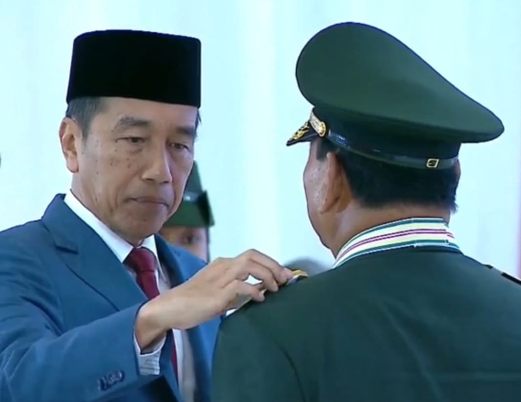 “Panglima TNI mengusulkan agar Pak Prabowo diberikan pengangkatan dan kenaikan pangkat secara istimewa jadi semuanya memang berangkat dari bawah. Berdasarkan usulan Panglima TNI, saya menyetujui untuk memberikan kenaikan pangkat secara istimewa berupa Jenderal TNI Kehormatan,” tutur Presiden.
