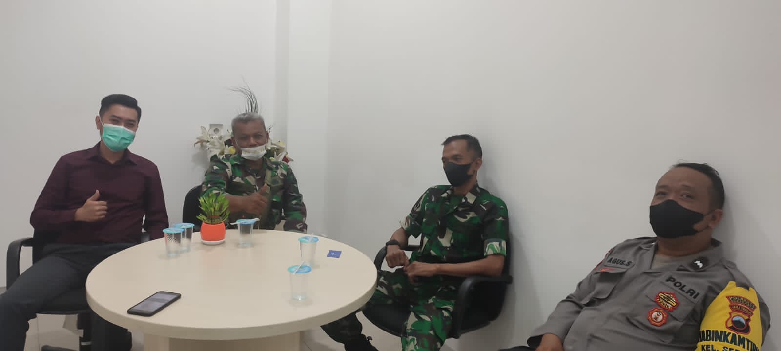 Surakarta – Dalam rangka meningkatkan sinergitas di wilayah binaanya, Babinsa Kelurahan Serengan Koramil 03 Serengan Kodim 0735 Surakarta Serma Fitalis Erwan, dan Serka Aris bersama Bhabinkamtibmas Aipda Agus terus aktif melaksanakan Komsos bersama seluruh elemen masyarakat dan Instansi Terkait seperti pada Komsosnya bersama Suryo Utomo Pimpinan Cabang IBK (Industrial Bank Of Korea) Bank Indonesia di Jln Veteran No 217 yang berada di wilayah Kelurahan Serengan Kecamatan Serengan Kota Surakarta. Rabu pukul 11.00 Wib (9/11/2022).