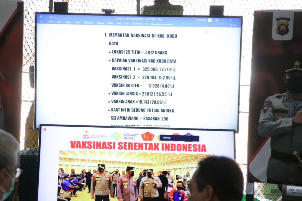 Selain itu, Kapolda Kalbar Irjen Pol Suryanbodo Asmoro juga mengatakan, untuk capaian Vaksinasi dosis I di Daerah Kalimantan Barat sudah mencapai 84,8%, Dosis II 62%. Harapanya agar akhir bulan Maret sudah mencapai 70%.