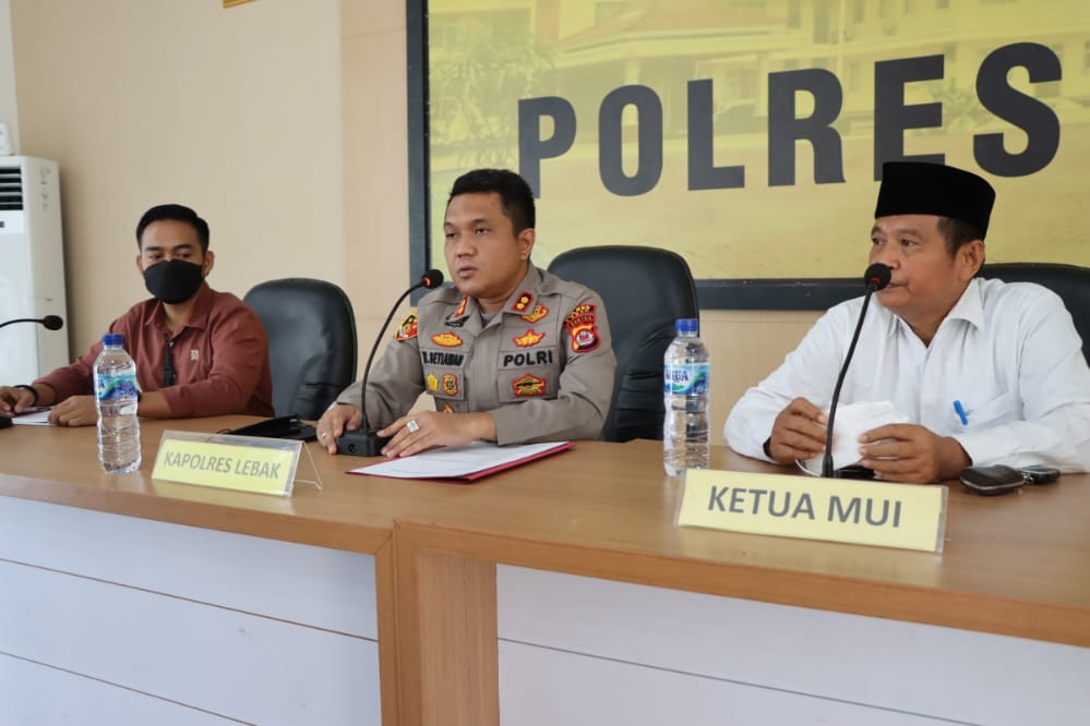 Dalam Press Conferencenya Kapolres Lebak Polda Banten AKBP Wiwin Setiawan,SIK,M.H. didampingi Kasat Reskrim AKP Indik Rusmono,SH,SIK,M.H dan Ketua MUI Lebak Kyai H. Pupu Mahpudin mengatakan,