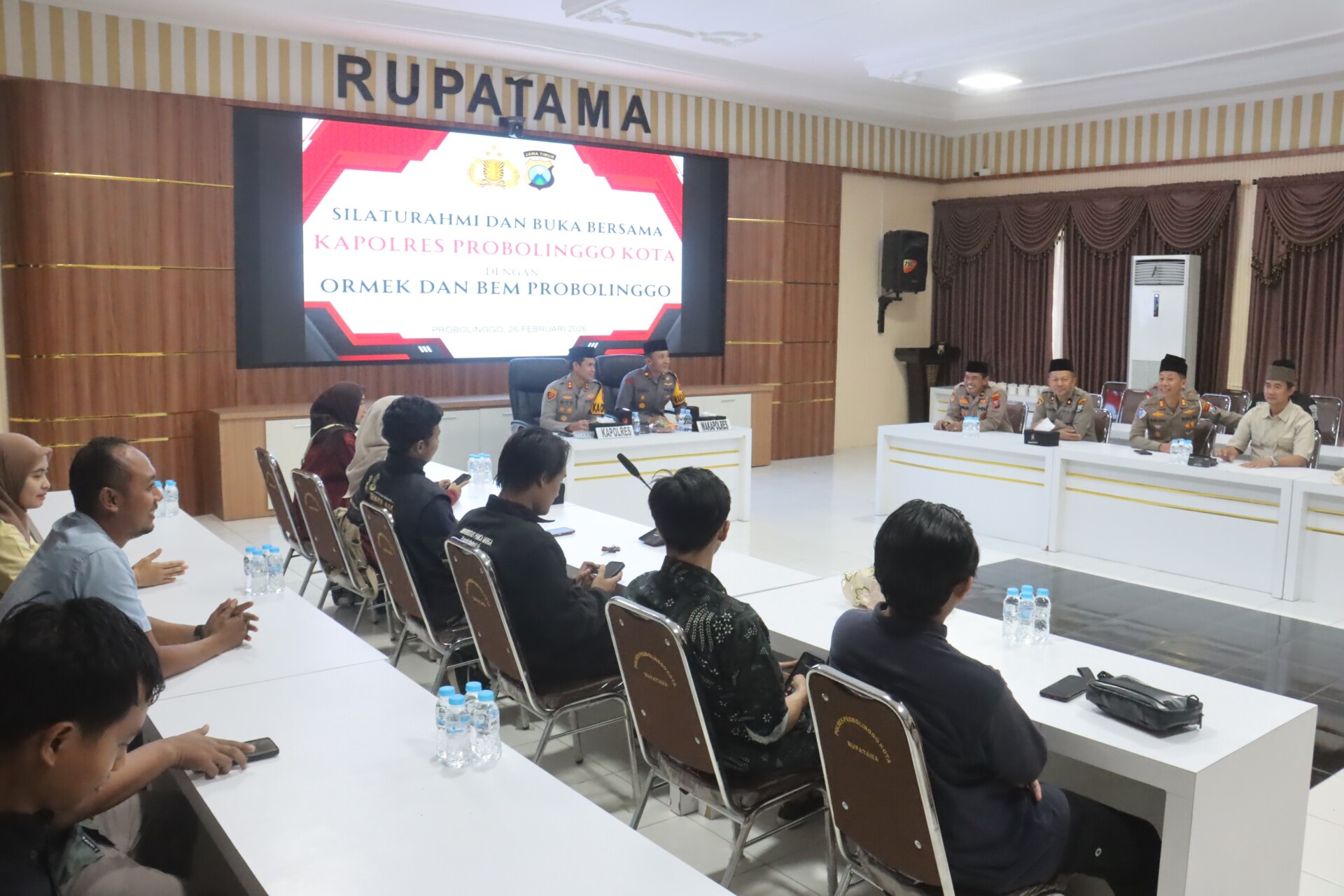 PELITAKOTA.ID: Probolinggo, 27 Februari 2026 – Kapolres Probolinggo Kota AKBP Rico Yumasri S.I.K., M.I.K., menggelar buka puasa bersama organisasi kemahasiswaan (Ormek) dan Badan Eksekutif Mahasiswa (BEM) Probolinggo di Ruang Rupatama Mapolres Probolinggo Kota, Kamis (26/2/2026).