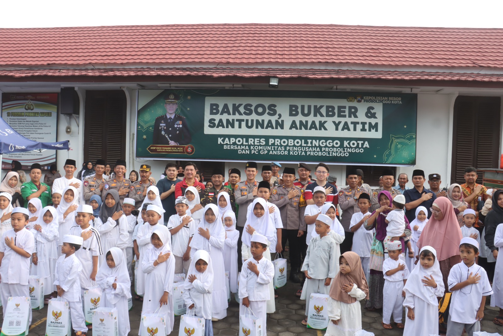 Dalam kegiatan tersebut, Polres Probolinggo Kota menyalurkan santunan kepada 50 anak yatim piatu serta membagikan bantuan sosial berupa beras kepada 500 masyarakat.