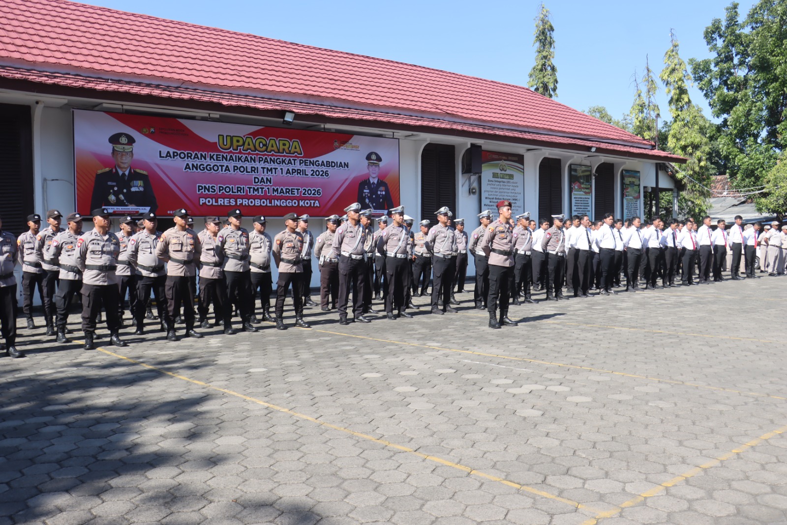 PELITAKOTA.ID: Probolinggo – Kapolres Probolinggo Kota AKBP Rico Yumasri, S.I.K., M.I.K., memimpin langsung upacara kenaikan pangkat pengabdian personel Polri periode 1 April 2026 dan kenaikan pangkat PNS Polri periode 1 Maret 2026 di Lapangan Apel Polres Probolinggo Kota, Rabu (1/4/2026).
