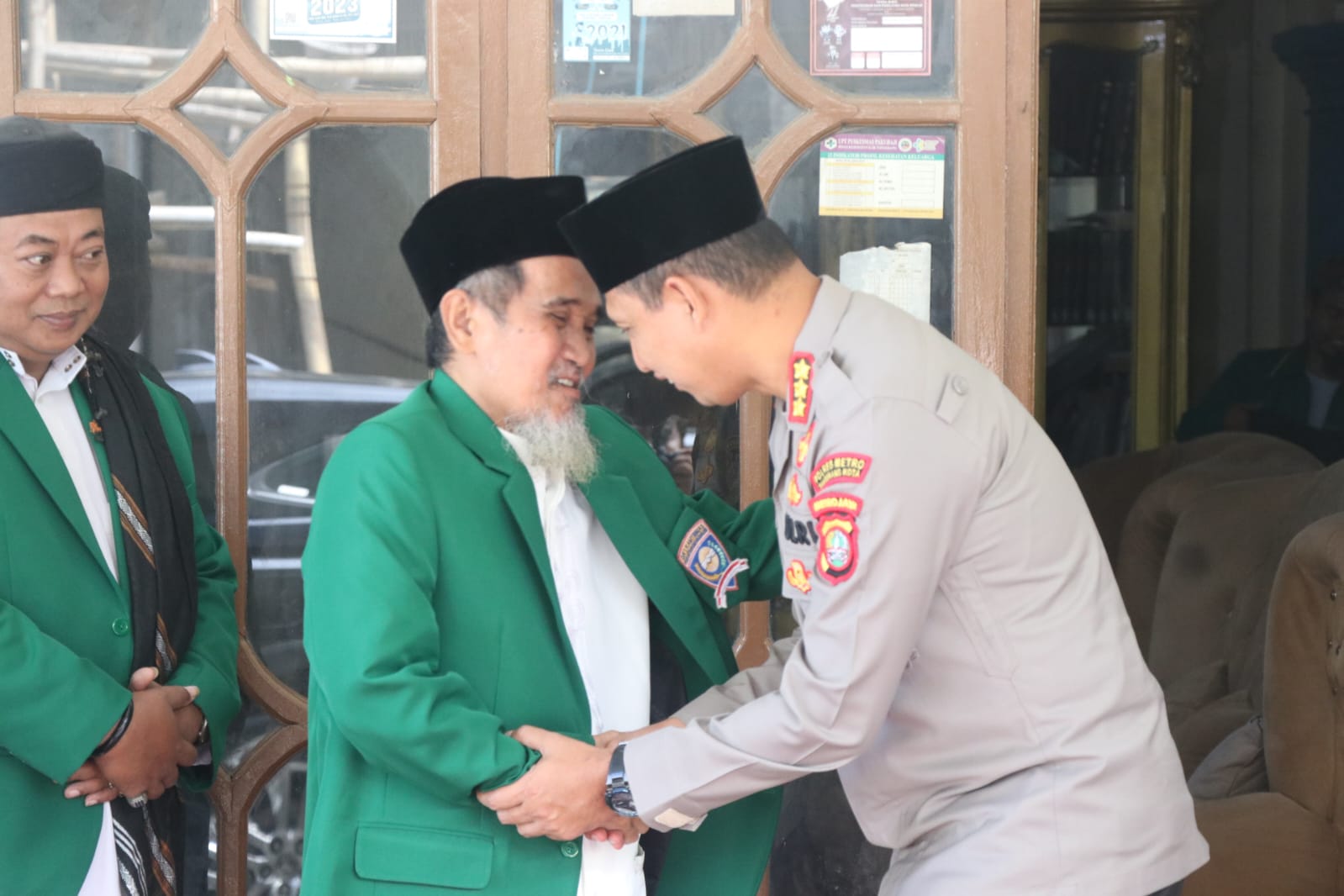 TANGERANG — Kapolres Metro Tangerang Kota, Kombes Pol Zain Dwi Nugroho menyambangi kediaman tokoh agama di Pondok Pesantren (Ponpes) Daarul Anshor, di Kampung Rawa Kepuh, Desa Pakualam, Kecamatan Pakuhaji, Kabuoaten Tangerang, Banten. Jum’at (14/3/2025) siang kemarin.