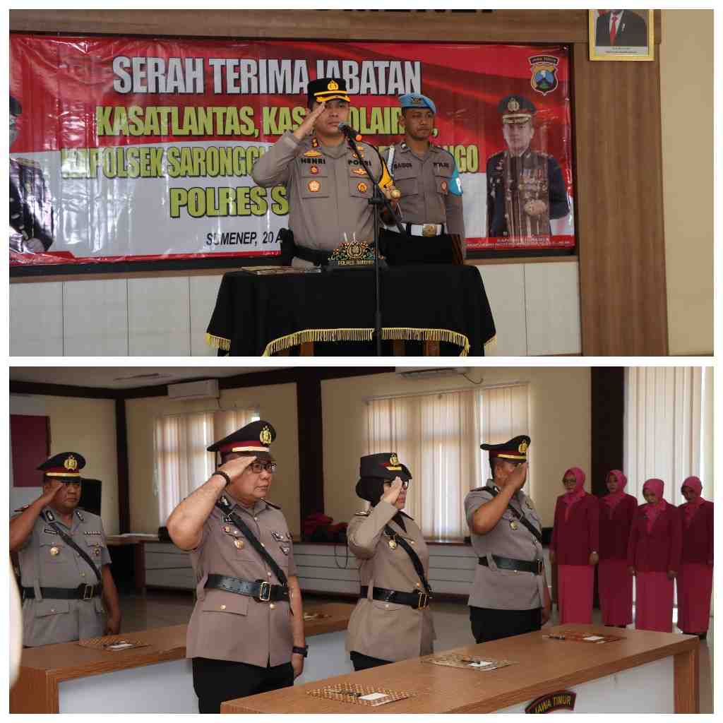 Pejabat yang diserahterimakan adalah, AKP Alimuddin Nasution, S.H., M.H jabatan lama Kasat Lantas Polres Sumenep jabatan baru Kasat Lantas Polres Blitar, AKP Ninit Titis Dwiyani, S.E jabatan lama Kanit SI Audit dan Inspeksi Subdit Kamsel Ditlantas Polda Jatim jabatan baru Kasat Lantas Polres Sumenep, AKP Sahrawi, S.H jabatan lama Kasat Polairud Polres Sumenep jabataaru Kapolsek Saronggi Polres Sumenep.