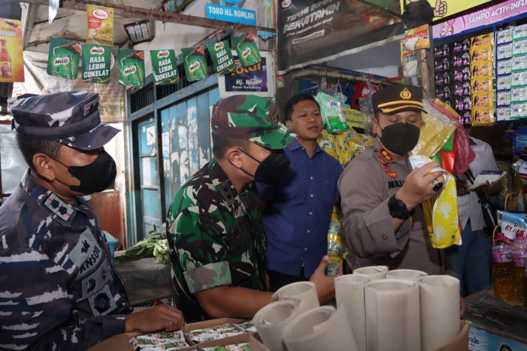 BANYUWANGI – Polresta Banyuwangi bekerjasama dengan Kodim 0825 Banyuwangi dan Lanal Banyuwangi untuk bersama-sama memantau harga minyak goreng (migor) di sejumlah pasar. Kamis (26/5) Kapolresta Banyuwangi, AKBP Deddy Foury Millewa, Dandim 0825 Banyuwangi, Letkol Kav Eko Julianto Ramadan, serta Danlanal Banyuwangi, Letkol Laut (P) Ansori, turun langsung di lapangan.