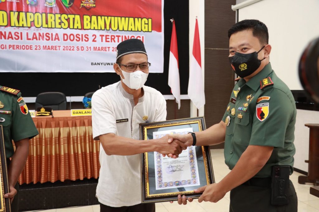 BANYUWANGI : Kegiatan percepatan vaksinasi lansia dosis 2 secara serentak dilaksanakan di seluruh Kecamatan Se-Kabupaten Banyuwangi terhitung mulai tanggal 23 Maret 2022 sampai dengan 31 Maret 2022 secara bersama-sama oleh Camat, Danramil, Kapolsek dan Kepala Puskesmas dengan mengerahkan para Lurah/Kepala Desa sampai para Ketua RT/RW guna pengerahan massa ke lokasi vaksinasi.