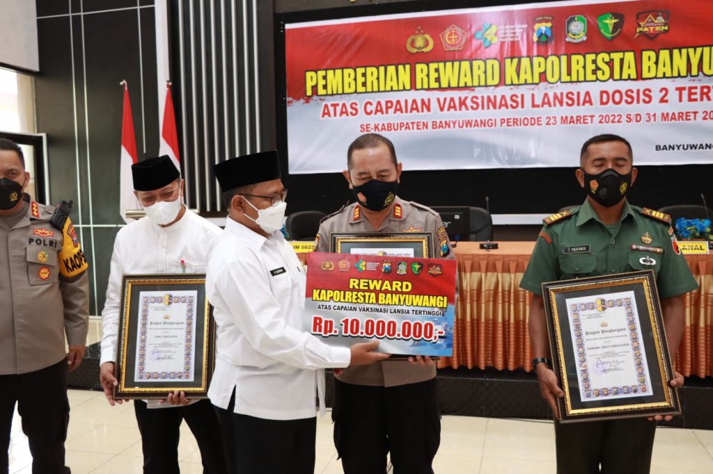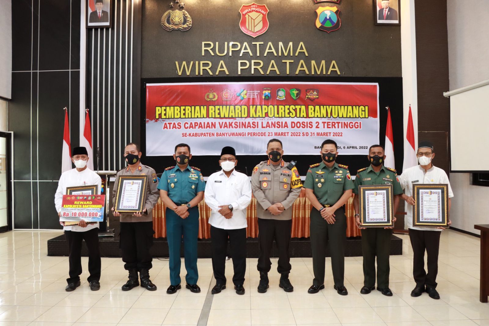 Tampak hadir dalam pemberian reward tersebut Wakil Bupati Banyuwangi, Dandim 0825 Banyuwangi, Danlanal Banyuwangi, dan Kapolresta Banyuwangi serta para Kapolsek jajaran Polresta Banyuwangi.
