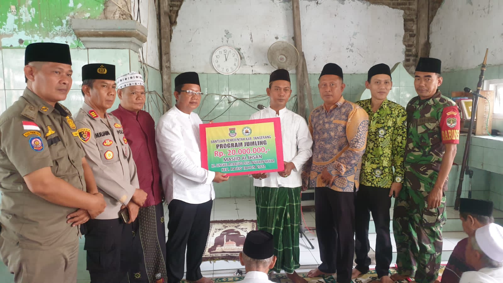 KABUPATEN TANGERANG – Kapolsek Rajeg AKP Nurjaman S.H mendampingi Camat Rajeg Ahmad Patoni, melaksanakan Giat Jumat Keliling (Jumling) Dewan Masjid Indonesia (DMI) Kabupaten Tangerang, dan Shalat Jumat berjamaah, di Masjid Al- Ihsan Kampung Jungkel Desa Tanjakan Mekar Kecamatan Rajeg Kabupaten Tangerang, Jumat (23/09/2022).