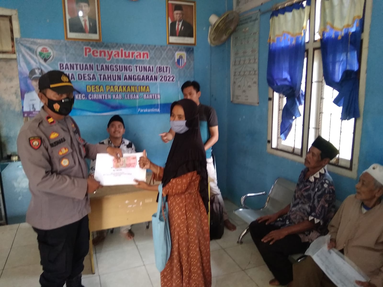 LEBAK,-Kapolsek Cirinten Polres Lebak, IPTU Rusnaka bersama BRIPKA Rio Karya Umbara, melaksanakan kegiatan monitoring penyaluran dana BLT Desa, di kantor Desa Parakan Lima, Kecamatan Cirinten, Kabupaten Lebak, sekaligus memberikan himbauan dan edukasi prokes kepada warga masyarakat yang akan menerima bantuan BLT Desa ,agar selalu taat dan patuhi protokol kesehatan.Minggu (05/06/2022)