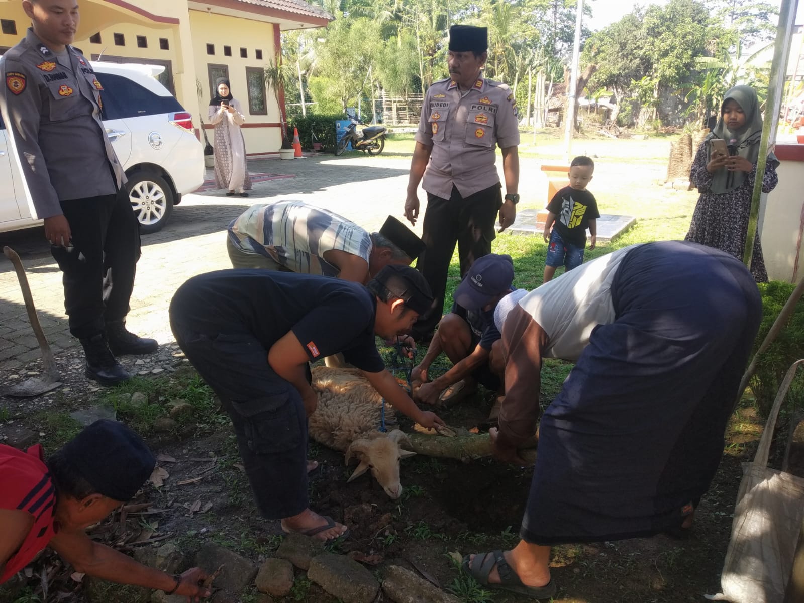 Lebak (10/07/2022) – Kegiatan Polsek Leuwidamar Polres lebak melaksanakan Penyerahan 1 ekor Kambing dari Polsek Leuwidamar Dalam Rangka Idul Adha 1443 Hijriah Tahun 2022 di halamana polsek Leuwidamar dan diterima oleh H.Amin ( Toko agama Desa Lebak parahiang) yg selanjutnya akan dibagikan kepada masyarakat yg tidak mampu dan Anak Yatim