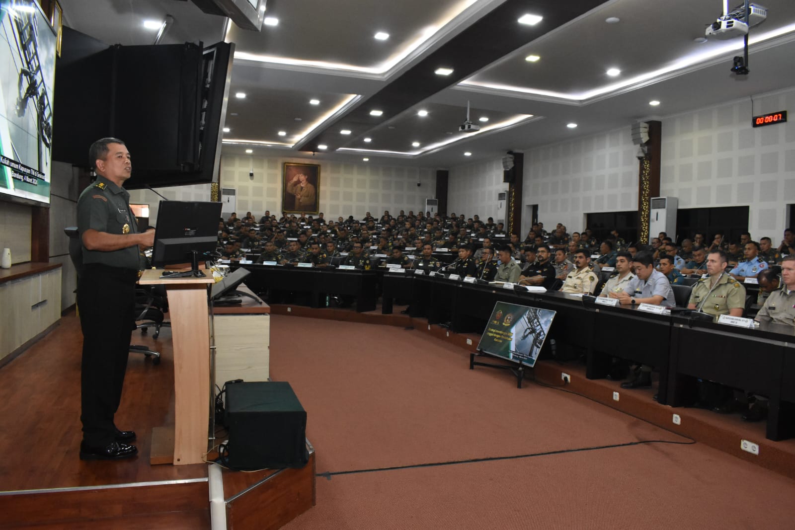 Jakarta – Kepala Pusat Penerangan (Kapuspen) TNI Mayor Jenderal TNI Dr. R. Nugraha Gumilar, M.Sc. hadir sebagai narasumber dalam rangka memberikan kuliah umum kepada Perwira Siswa (Pasis) Pendidikan Reguler (Dikreg) LXIV Seskoad TA 2024 bertempat di Gedung Gatot Subroto Seskoad, Bandung, Jawa Barat, Senin (4/3/2024).