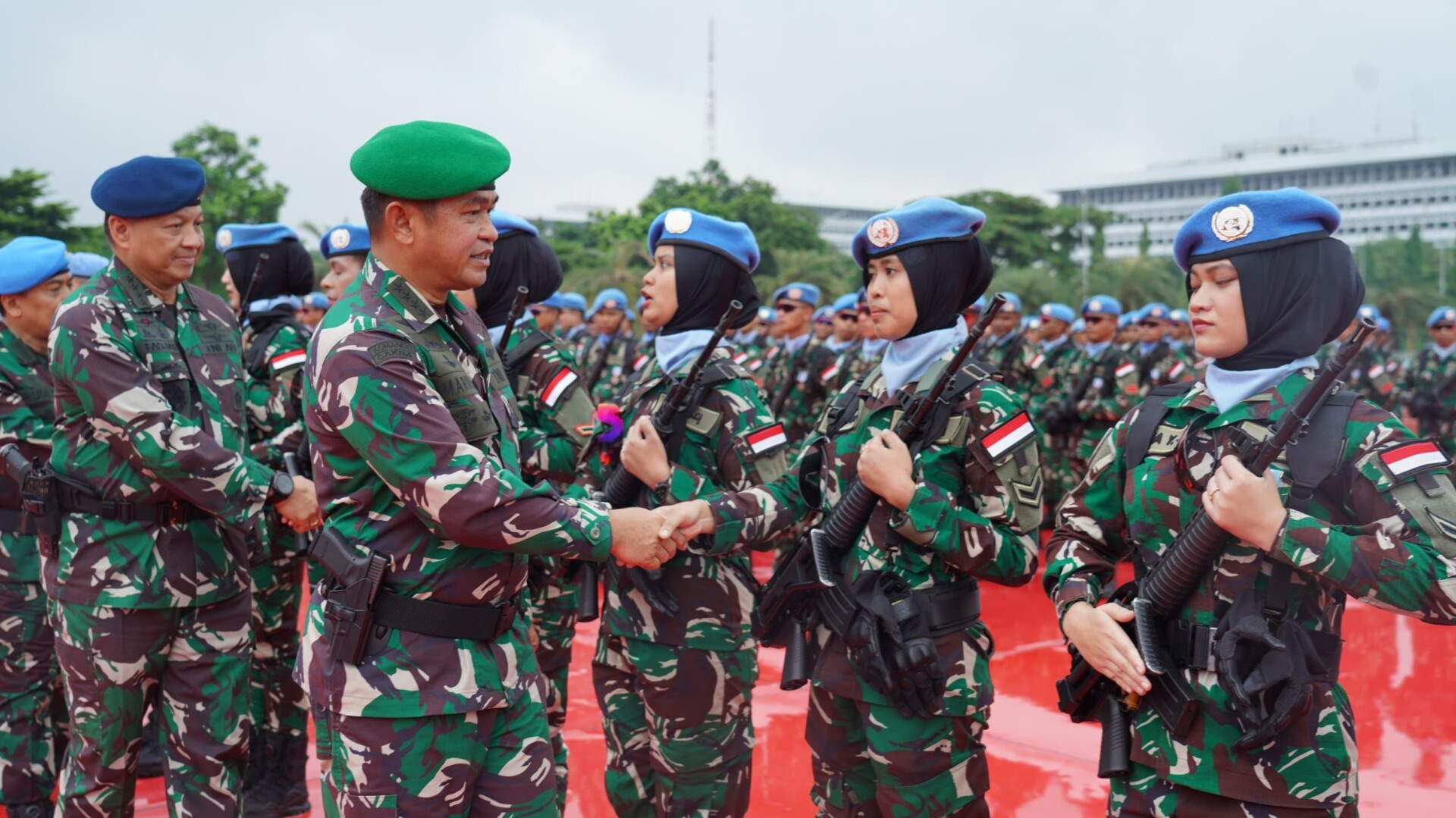 JAKARTA – Kepala Staf Angkatan Darat (Kasad) Jenderal TNI Maruli Simanjuntak, M.Sc., mendampingi Panglima TNI Jenderal TNI Agus Subiyanto. S.E., M.Si. menyambut kedatangan pasukan Kontingen Garuda (Konga) XXIII-Q dan Milstaf Seceast Unifil (Staf Militer Sektor Timur) usai melaksanakan penugasan misi perdamaian Perserikatan Bangsa-Bangsa (PBB) di Lebanon, bertempat di Plaza Mabes TNI, Jakarta, Kamis (14/3/2024).