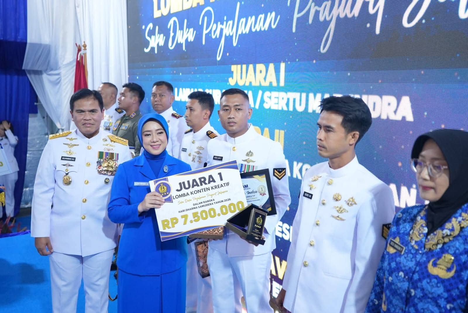 *Dispen Kormar TNI Angkatan Laut (Jakarta)*. Kepala Staf Angkatan Laut (Kasal) Laksamana TNI Dr. Muhammad Ali, S.E., M.M., M.Tr.Opsla. mengapresiasi keberhasilan karya prajurit Korps Marinir TNI Angkatan Laut yang berhasil meraih Juara 1 Lomba Video Pendek dan Juara 1 Lomba Konten Kreatif tingkat TNI AL dalam rangka memperingati Hari Dharma Samudera Tahun 2026. Apresiasi tersebut diserahkan langsung oleh Kasal didampingi Ketua Umum Jalasenastri Ny. Fera Muhammad Ali, bertempat di atas geladak heli KRI dr. Radjiman Wedyodiningrat (992) di perairan Jakarta, Kamis (15/01/2026).