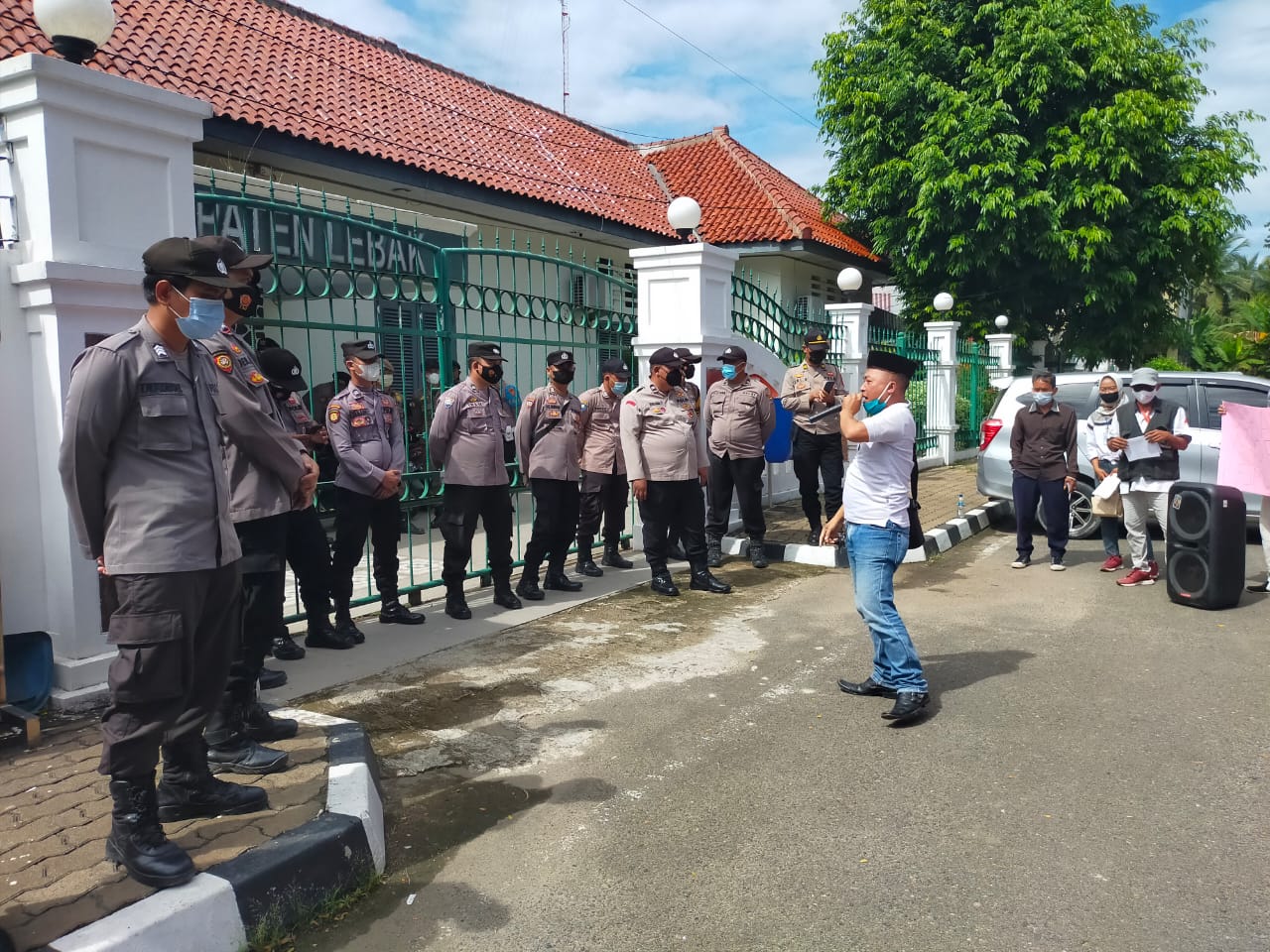 “Ya hari ini kita Polres Lebak melaksanakan pengamanan aksi unjuk rasa oleh gabungan Gerakan Moral LSM Lebak di depan Gedung DPRD Kabupaten Lebak,” ujar Rinaldi