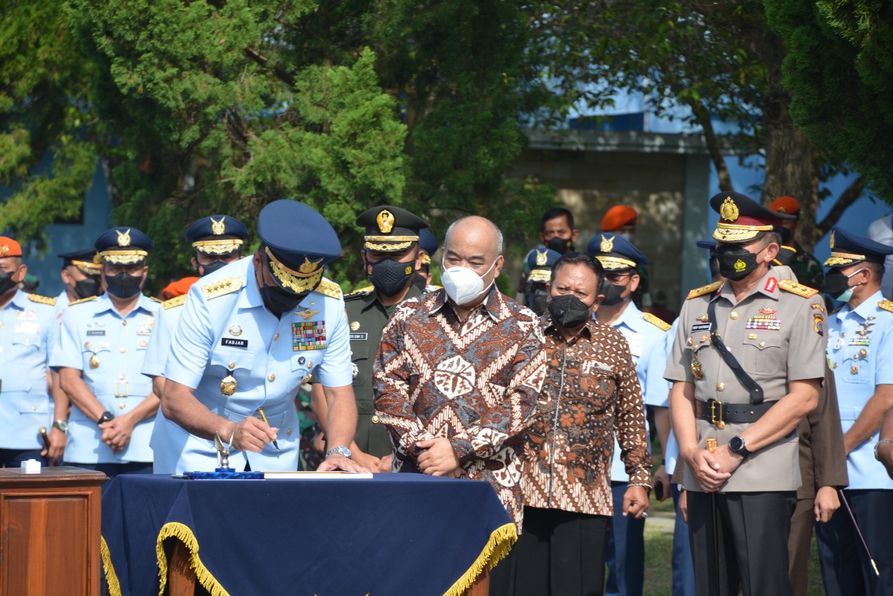 Upacara serah terima jabatan dipimpin langsung oleh Kepala Staf Angkatan Udara (Kasau) Marsekal TNI Fadjar Prasetyo S.E., M.P.P. di lapangan Dirgantara Kesatrian AAU Yogyakarta, Kamis (3/2/2022).