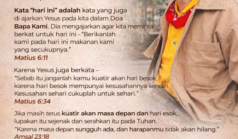 FOKUS PADA HARI INI SAJA Banyak orang seringkali selalu membicarakan hari esok, tentang bagaimana menata hari esok untuk menyongsong masa depan yang baik, namun sedikit…